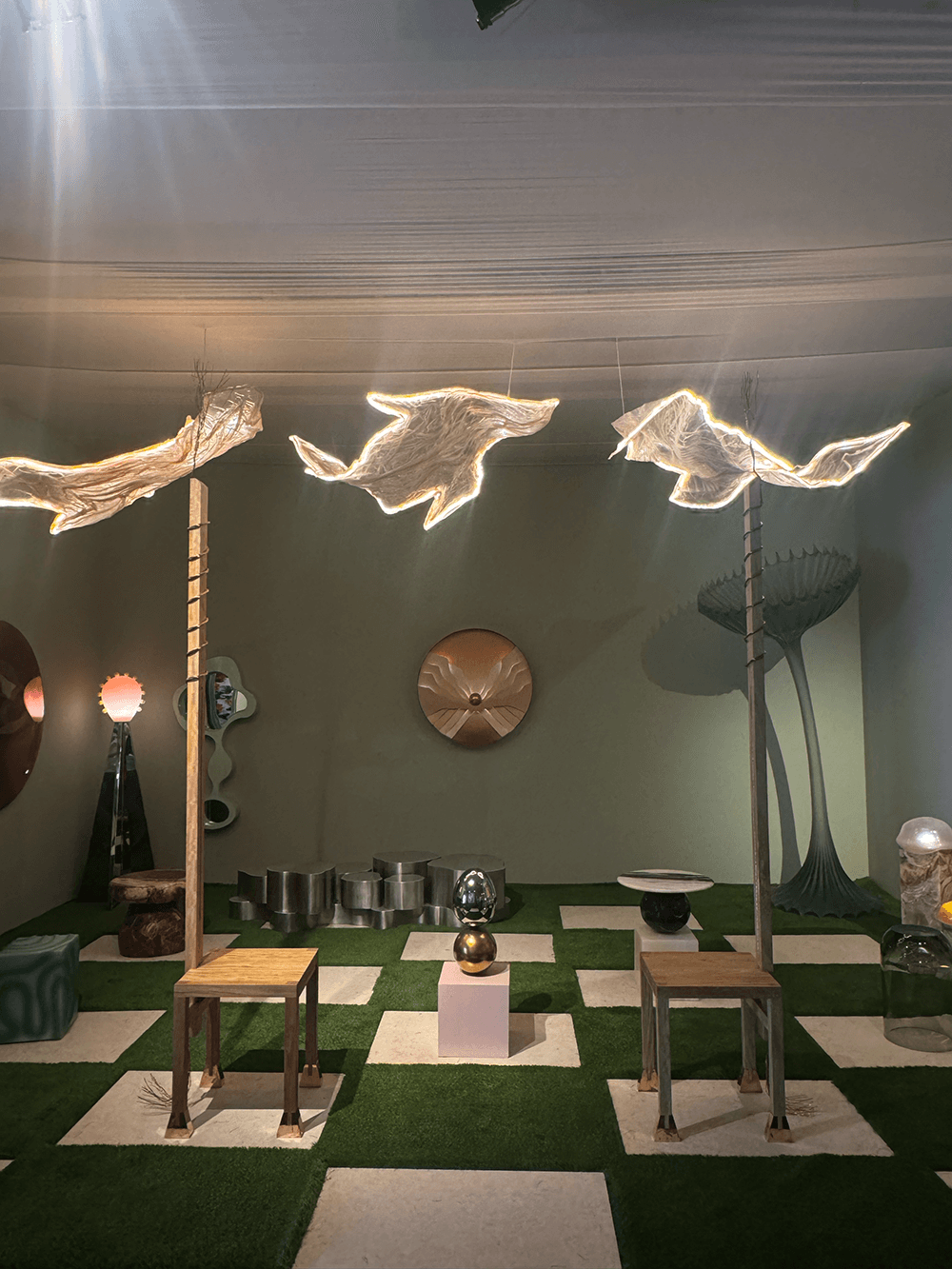 I popped into Design Miami and beelined to the Tuleste Factory booth to see my friend Kim Mesches' hanging light sculptures. He makes the most stunning sculptural pieces; I've been lucky enough to wear one of his pieces. The sculptures were ethereal and fluid, like all of his work is. I'm a proud friend!