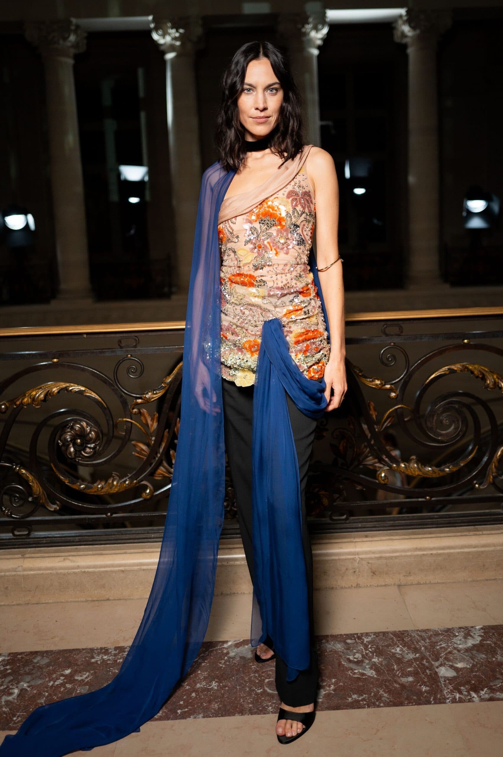 Pierrick Rocher/BFA.com/ShutterstockFor the Grand Dîner du Louvre in Paris, Alexa Chung wore Valentino from head to toe: a floral embellished mini dress with dramatic blue draping from the Spring 2026 collection over a pair of black trousers and open toed heels.