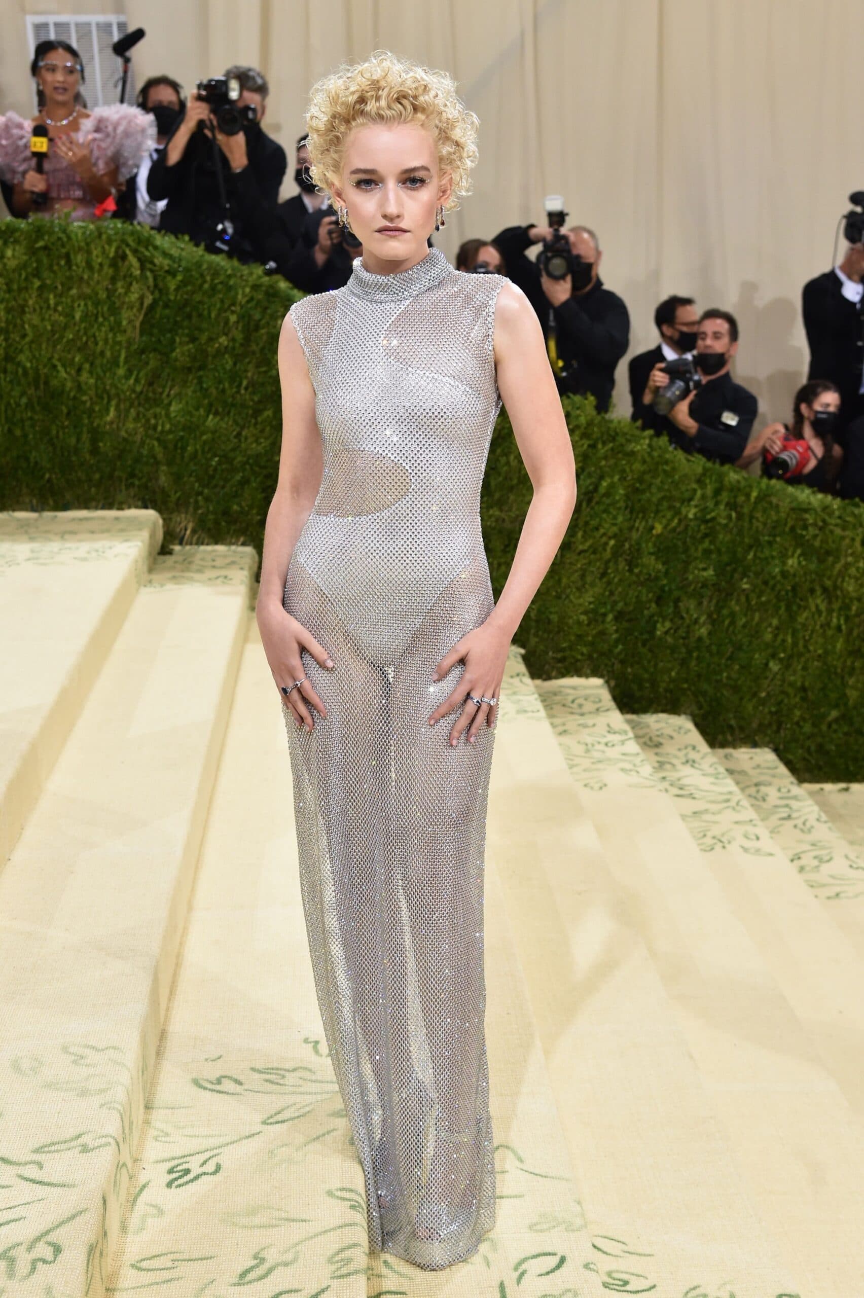 Stephen Lovekin/ShutterstockSomething about the 2021 Met Gala's theme of "In America: A Lexicon of Fashion" had the girls pulling out naked dresses left and right. Model Imaan Hammam wore a star-embellished archival Versace gown with a completely sheer top. Zoë Kravitz wore a sheer chainmail dress (with a matching thong!) by Saint Laurent. Kendall Jenner wore an Audrey Hepburn in "My Fair Lady"-inspired gown that was adorned with crystals and, of course, completely sheer. Julia Garner wore a sheer fishnet-inspired Stella McCartney gown covered in Swarovski crystals. And these aren't even all of the naked dress moments that graced that carpet.