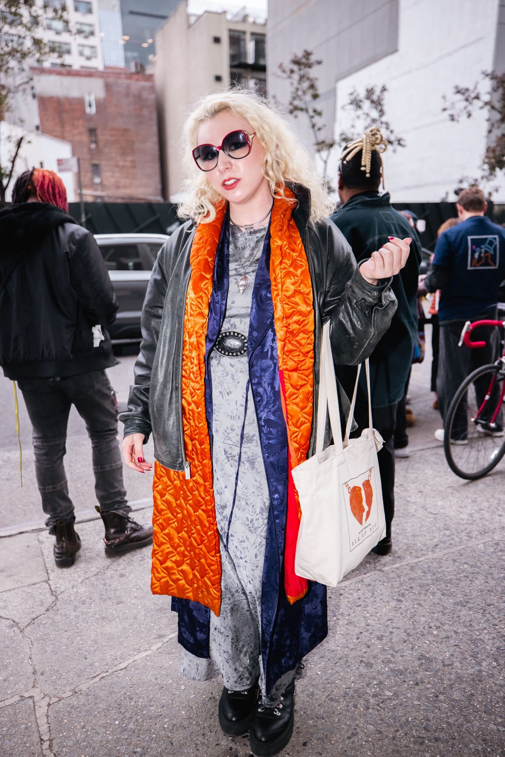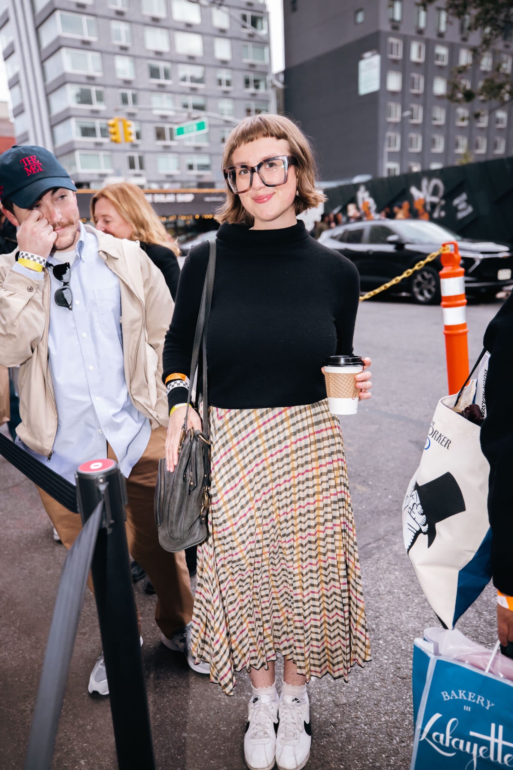 Especially in New York, “street style photography” has become synonymous with photos of extravagant, eccentric, and sometimes unwearable outfits. Which is understandable, considering the bulk of street style coverage happens during Fashion Week, where everyone is eager to get photographed. The New Yorker Festival, in comparison, may seem like it would be more of a “business casual” vibe. But the literary crowd doesn’t get enough credit for their style. When it comes to picturing writers and readers, people think of “librarian chic”—ill-fitting cardigans and glasses that don’t stay on your nose. But where there were office-friendly slacks, there were quirky glasses and funky jackets. Outside of Demi Moore and Jia Tolentino’s discussion at Webster Hall, we spoke to attendees, who very quickly proved that dressing smart doesn’t mean the death of personality.