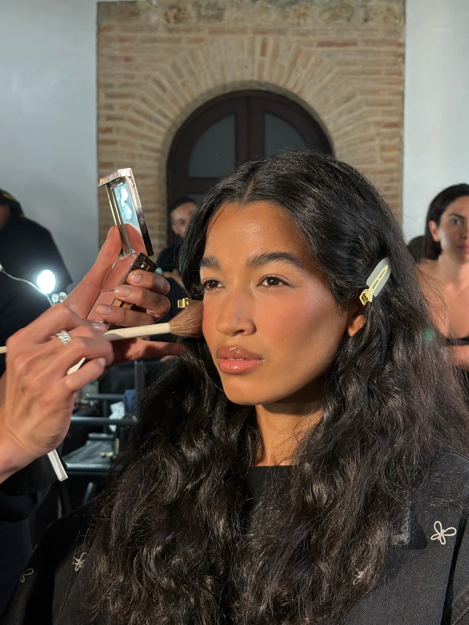 I knew that Oscar De La Renta is known for creating elegant party dresses in varying degrees of playfulness and polish, but I also learned that this Pre-Fall 2026 show was being held in Santo Domingo as an homage to his hometown and the 60th anniversary of the house of Oscar. The island's influence is all over his archival collections in the prints, motifs, and colors. But this show brought it home even more, with a cast of 50 models, all of Dominican descent, and local hairstylists and makeup artists assisting backstage. Ta had worked with Oscar De La Renta creative directors, Laura Kim and Fernando Garcia, previously having done makeup for their brand Monse, and he was the obvious and only choice for one of their last collections with De La Renta.