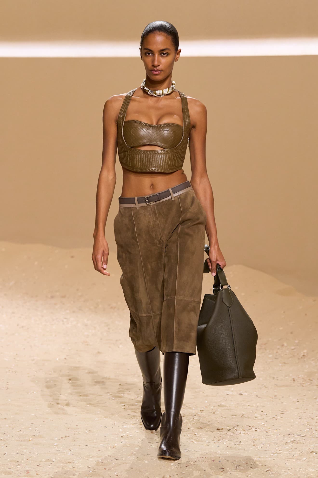 Courtesy of LemaireLemaire stole my heart with their whole Fall ‘23 collection, but this look, in particular, has held a residence in my mind ever since. I love the slinky boots with the wide-leg Bermuda shorts, the aviator jacket with the crisp shirting. With mismatched long and cropped silhouettes, the tall boots balance the look perfectly. You truly can’t go wrong.