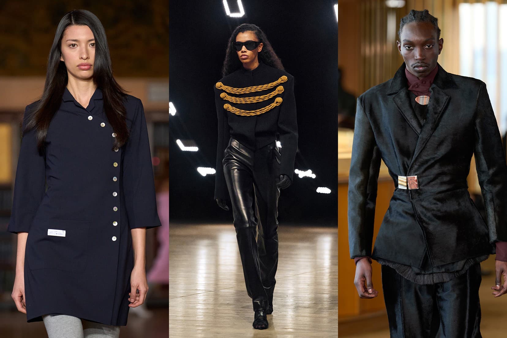 Proenza Schouler Fall/Winter 2026 LaunchmetricsThe asymmetry made its way to Paris, too. At Isabel Marant, things were a bit right of center with blue and red jackets featuring toggle closures that sat off to the side. At Hermés, jackets and dresses zipped up angularly and, in some instances, were paired with useless belts for an extra sense of closure. On Elie Saab's runway, jackets in leather, tweed, and wool featured asymmetric asymmetric buttons and were often only buttoned at the very top.