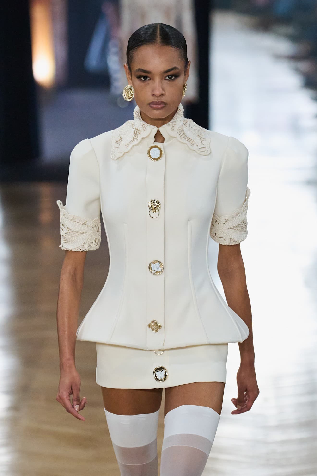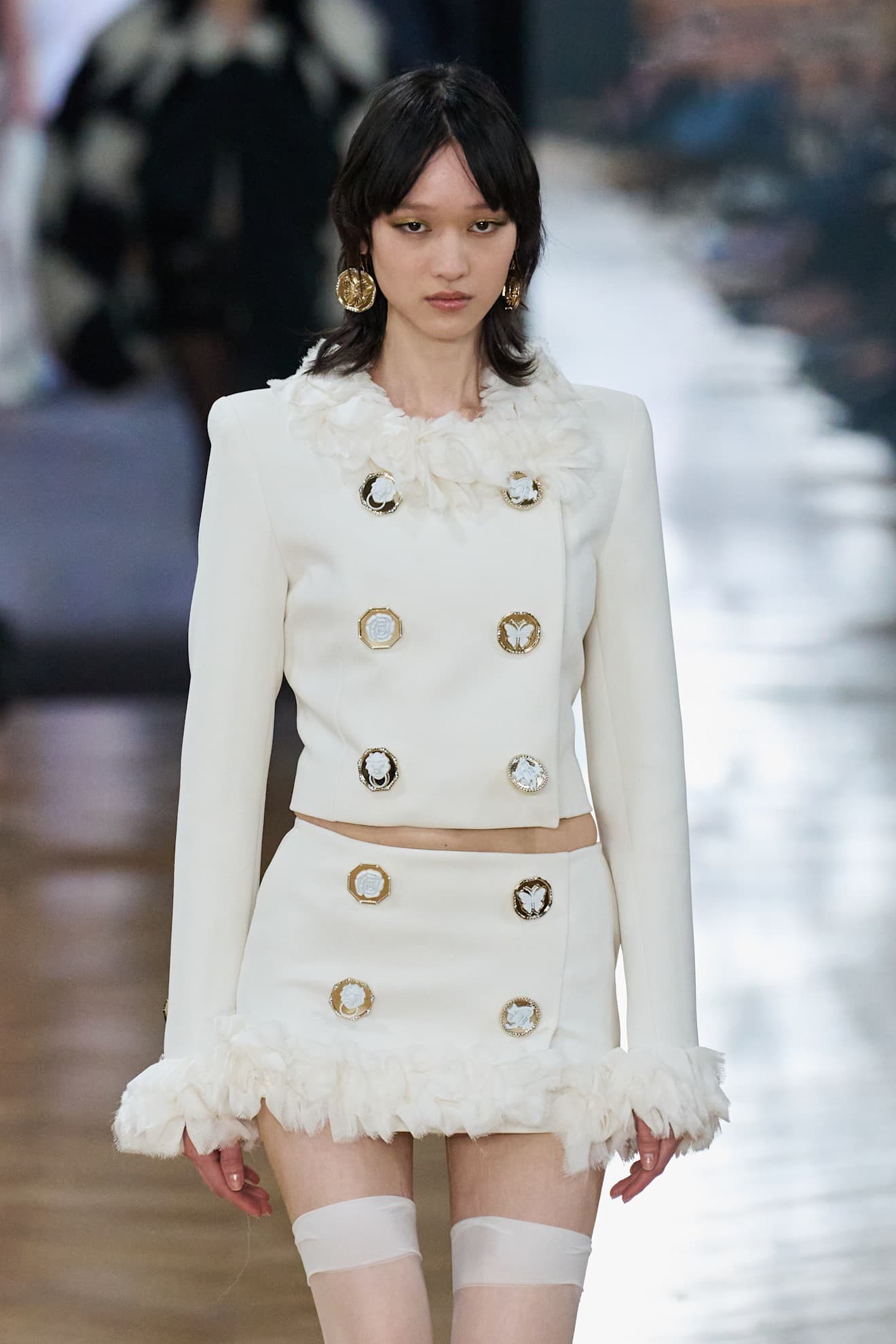 Carolina Herrera Fall/Winter 2026 LaunchmetricsAt the Blumarine show in Milan, the buttons were reminiscent of antique brooches and heirloom jewelry: gold and all with unique trimmings and centers, including flowers and butterflies. The buttons would make a statement on their own—as accessories or jewelry to complement a look—but make an extra statement due to their function.