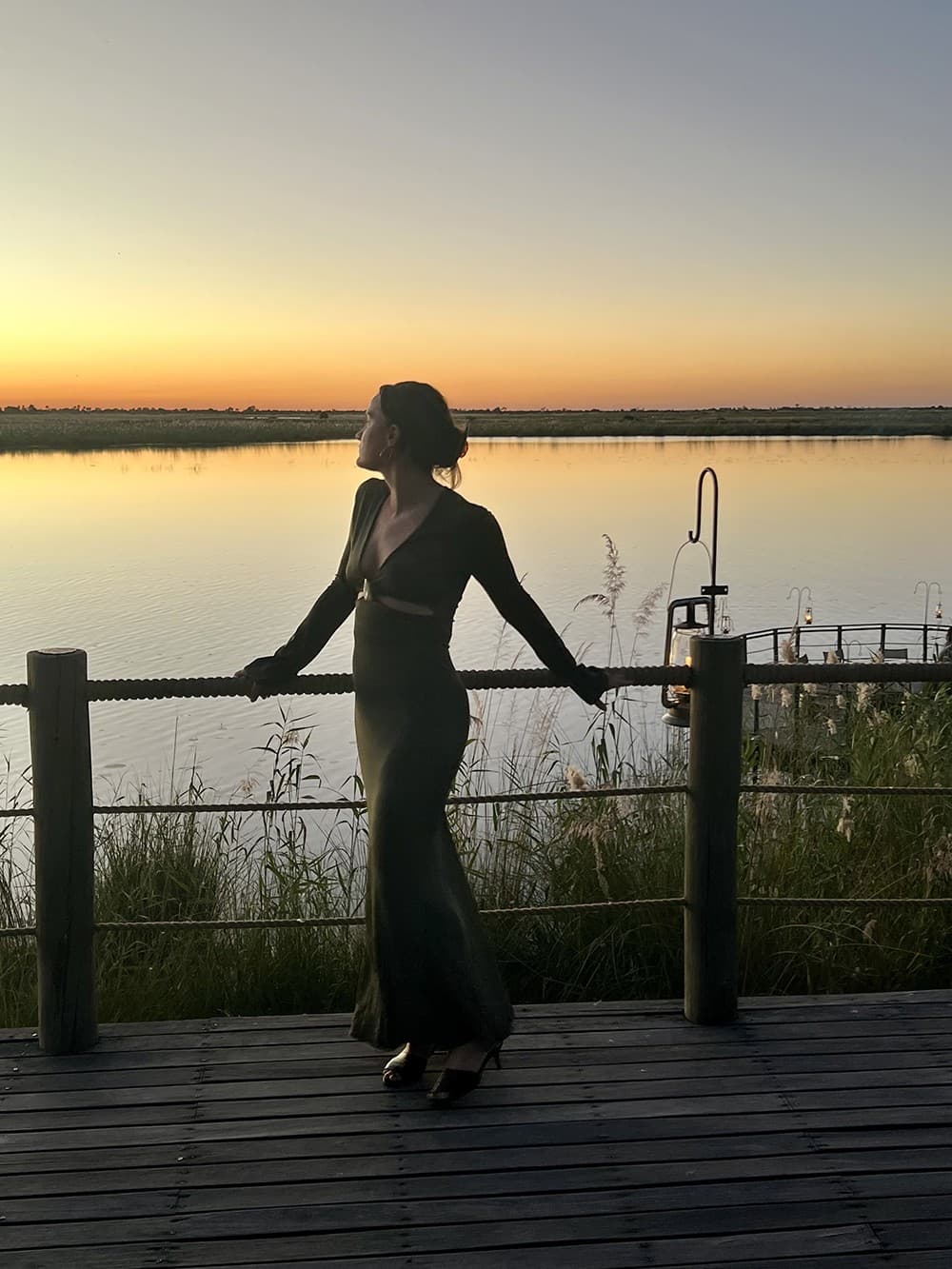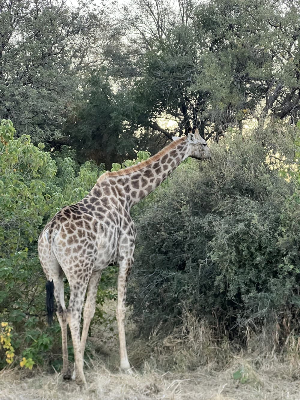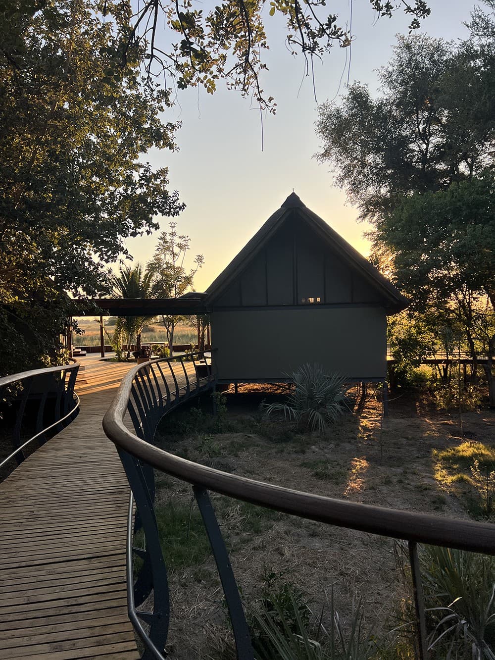 Still, I am who I am, and that person was thrilled to arrive at DumaTau, which was definitely the most resort-like stop of our journey. With its riverside views—which could be seen from my room, a sparkling pool, and well-equipped gym—this was a place that felt most aligned with my new habit of shamelessly taking nonstop selfies when the Botswanian morning and evening light was at its glowiest. It also was, I decide, the ideal backdrop for the cut-out Baobab dress still languishing in my suitcase. I break it out one night with a pair of (also untouched) high heel mules, and a man from the Wilderness team offers to take my picture. “My wife hates every photo I take of her, but I’ll try,” he says before proceeding to set up several shots like a pro and hype me up with a “work it, girl.” We get the shot right before my stiletto gets stuck in the holes between wood planks and I nearly faceplant. The night sky darkens and I spend the meal with my outfit completely obscured by two blankets, both of which I keep swaddled around me as I very carefully try not to trip on the way back to my room after eating.